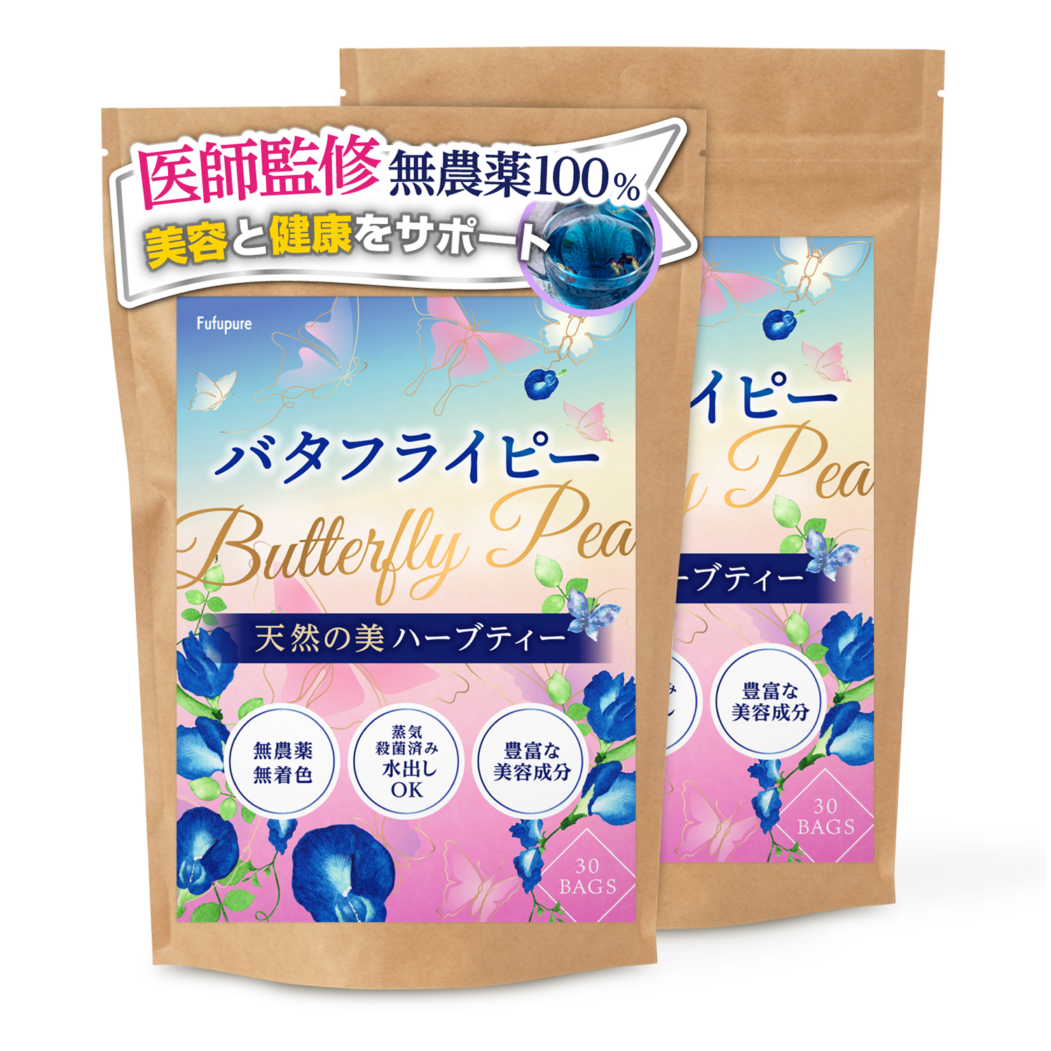 【蒸気殺菌処理済】乾燥処理だけでは菌が残ったままの状態です。Fufupureは蒸気殺菌処理して安全なバタフライピーをお届けします。
